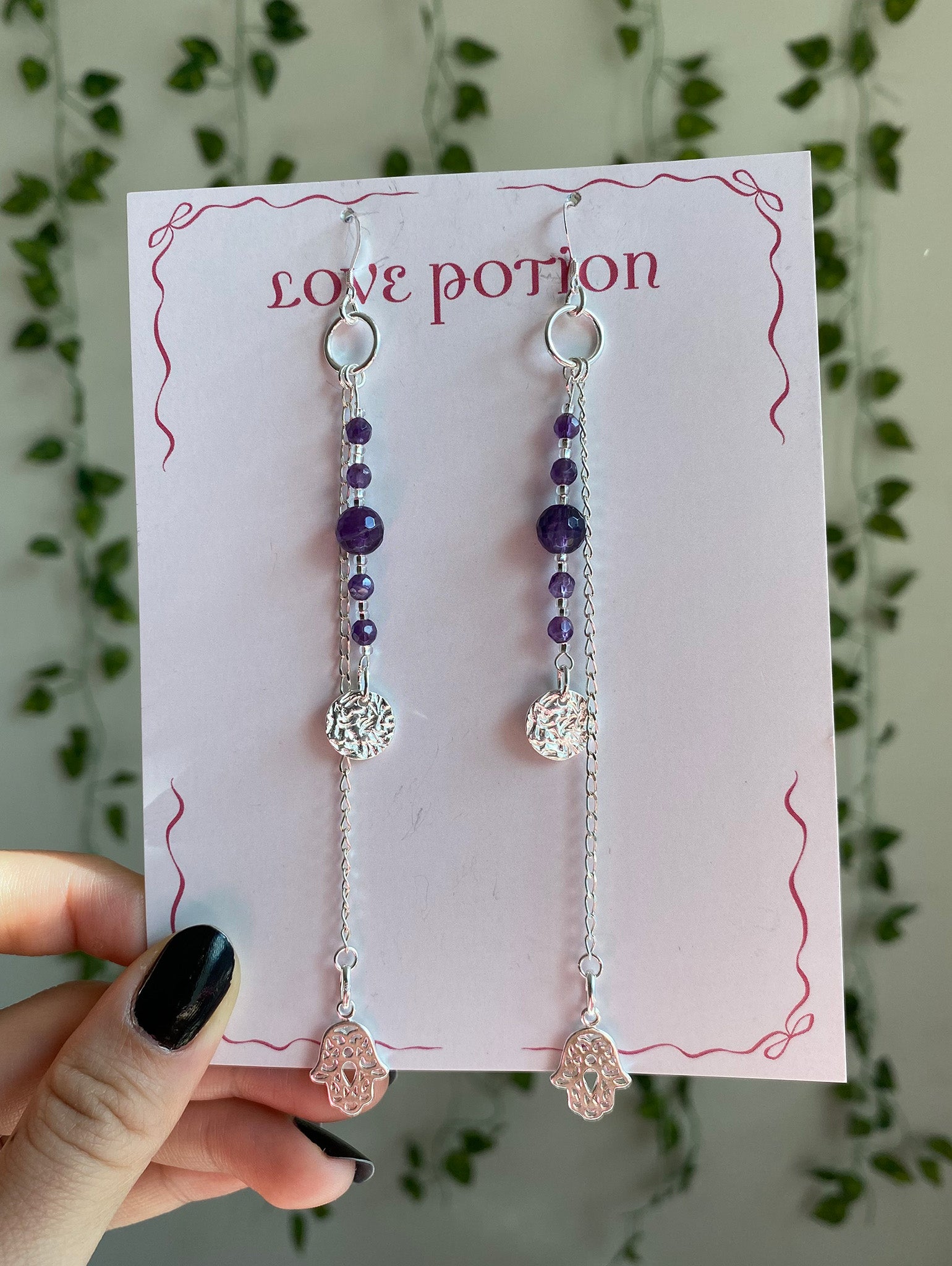 These handcrafted amethyst earrings blend refined elegance with spiritual intention. They serve as a powerful talisman for psychic protection and enhanced intuition. Amethyst's natural affinity for connecting you to higher consciousness makes these earrings an ideal accessory for dreamwork and spiritual exploration. A sophisticated statement piece that honours both artisanal craftsmanship and meaningful energy, designed for those who value beauty with purpose.