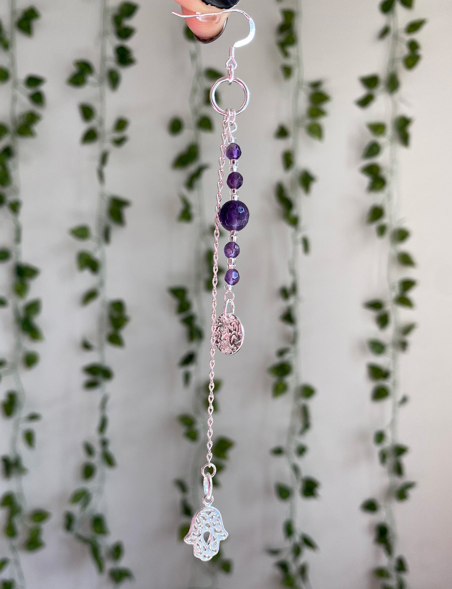 Materials: Faceted Amethyst Beads, Sterling Silver Charm and Findings.
